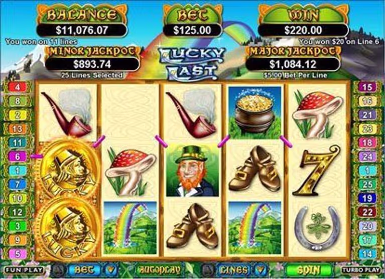 The 5-reel, 25-payline Lucky Last Slots game offers players plenty of opportunities to get lucky. If you're ready to seek out the pot of gold at the end of the rainbow, do it in this entertaining, Irish-themed slots game. Learn more about the amazing Lucky Last Slots below.